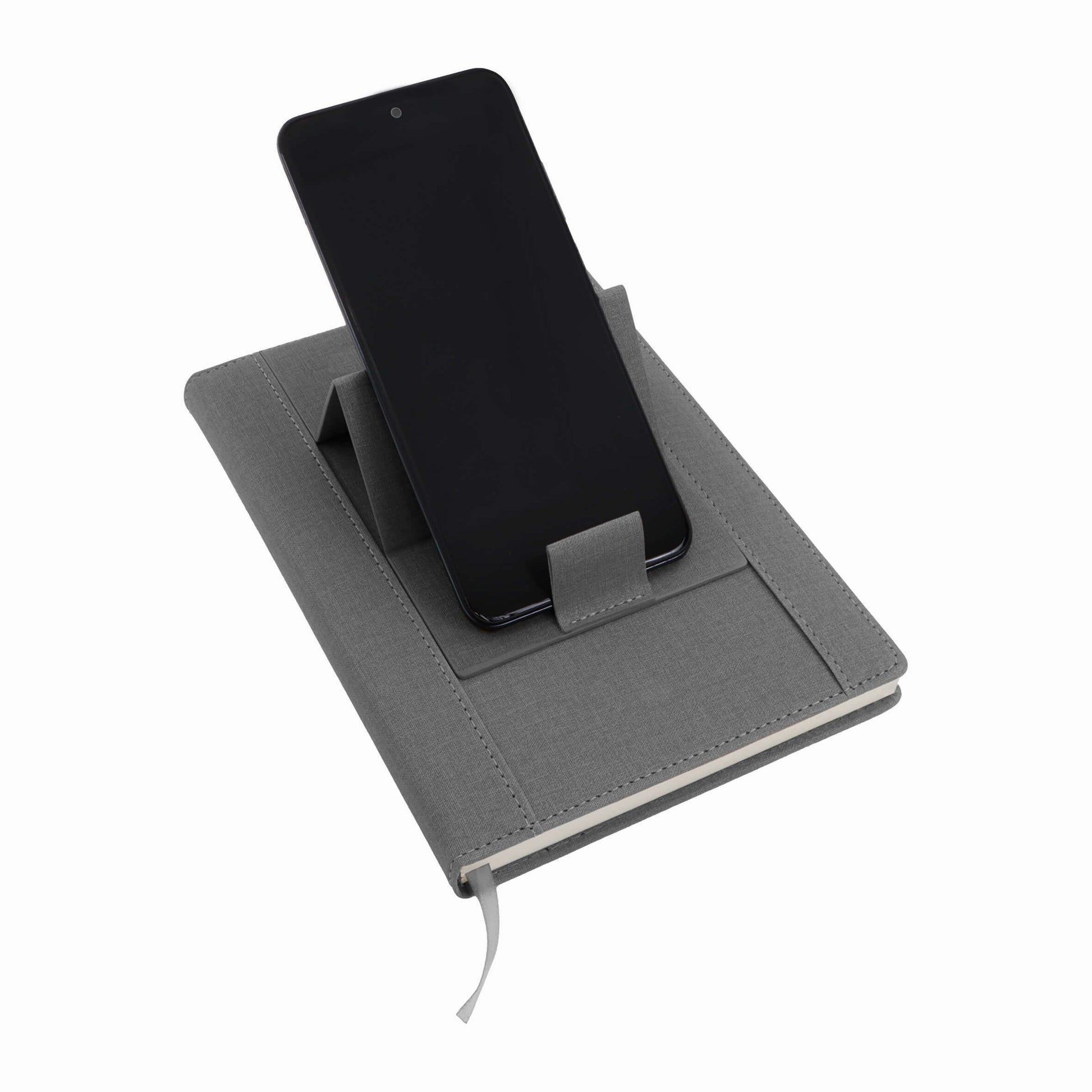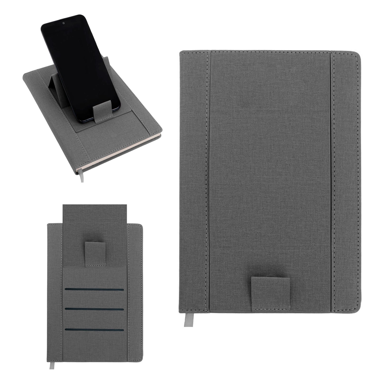 Descripción: Agenda diaria con 104 hojas rayadas, con calendario de 2025 a 2029, portada ajustable que sirve como soporte para celular y tarjetero . Dentro de sus apartados contiene: datos personales, teléfonos de emergencia y festividades personales.