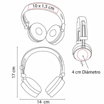 Descripción: Audífonos acojinados ajustables con cable entrada auxiliar. Incluye funda individual de satín negra.