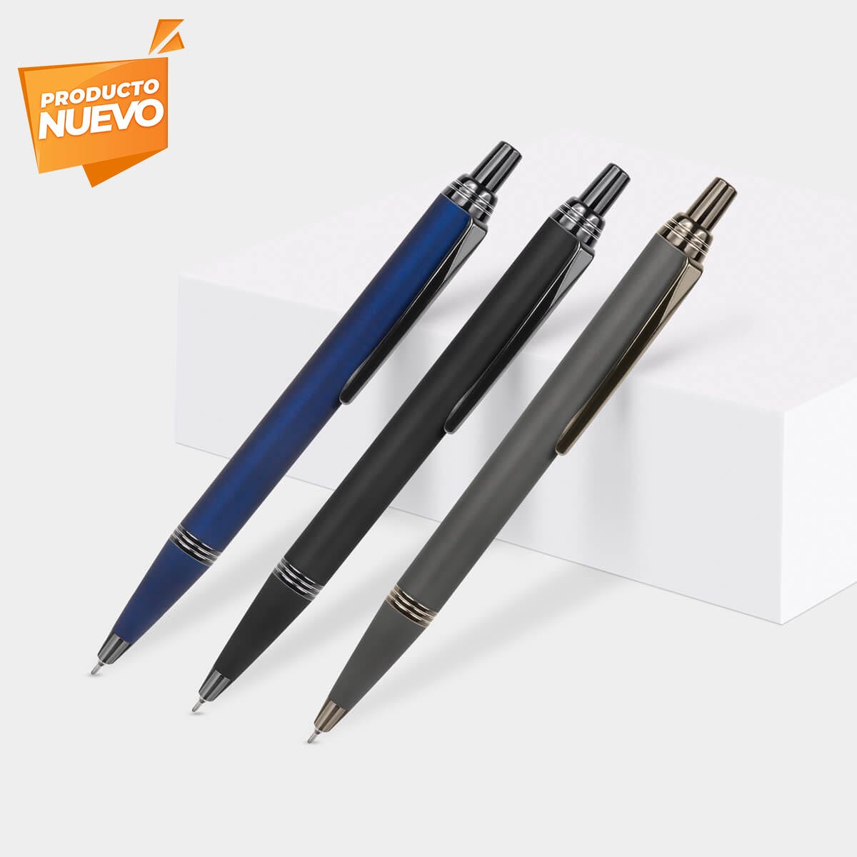 Descripción: Bolígrafo metálico doble acabado mate en el cuerpo y detalles cromados. Mecanismo pulsador.