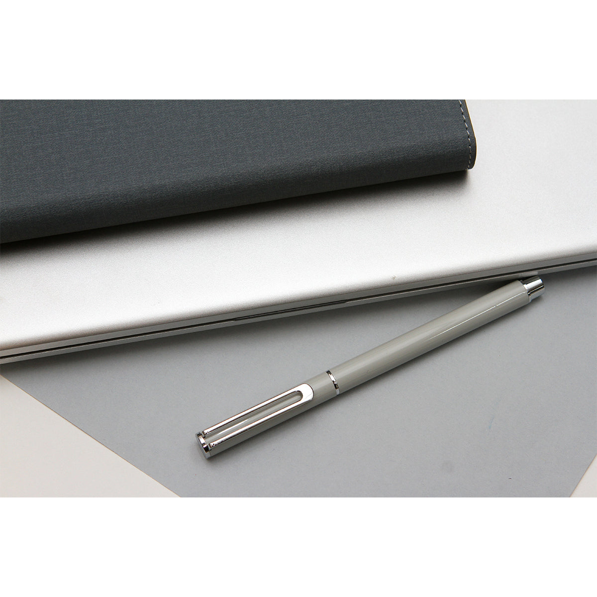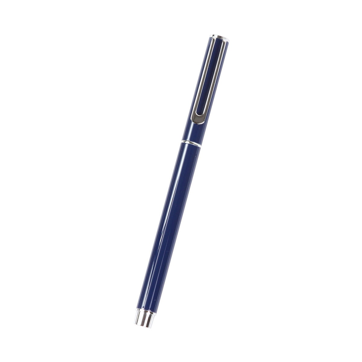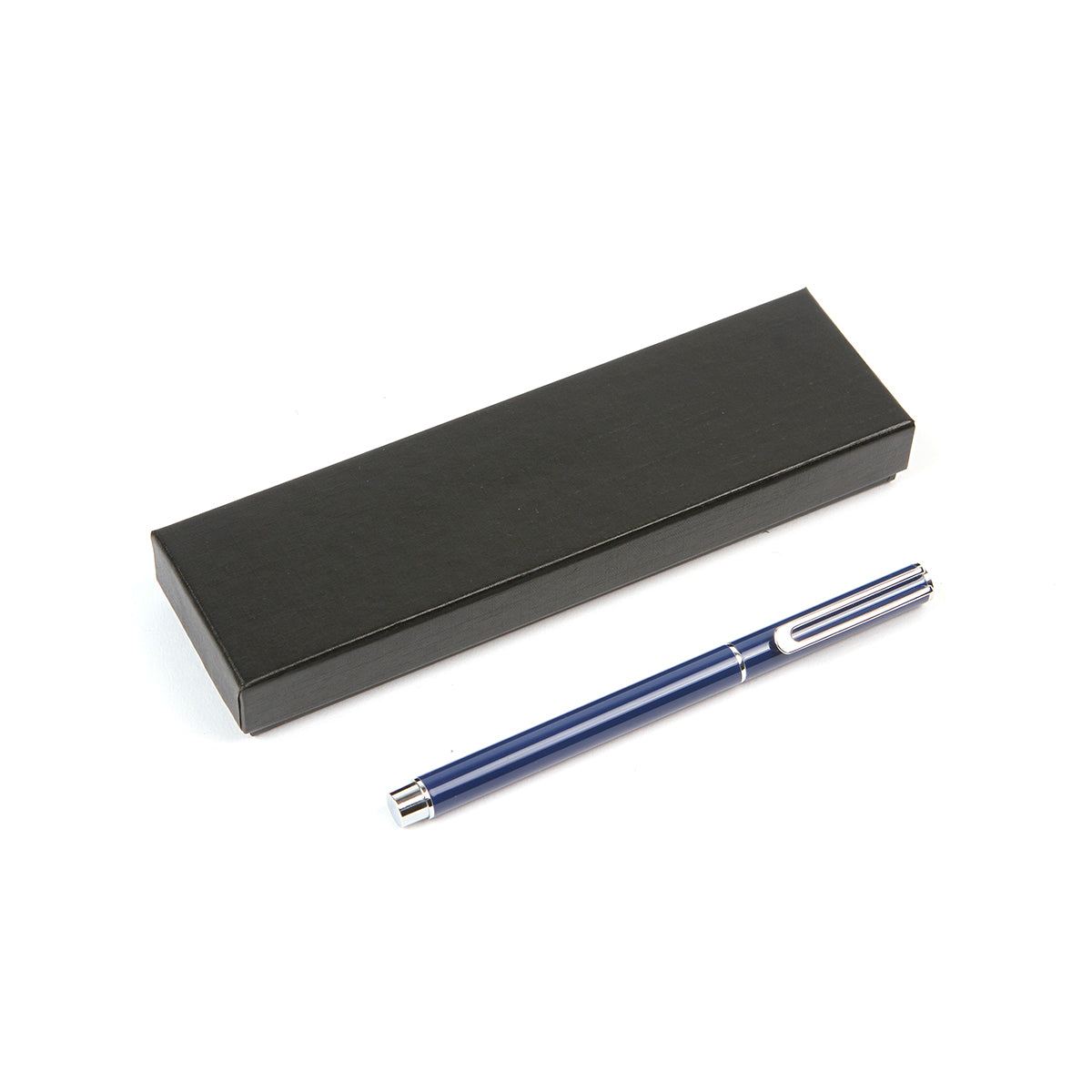 Descripción: Bolígrafo con barril fabricado en acero inoxidable, con detalles en color plateado, tipo roller con recambio de plástico. Tinta de escritura de gel color azul. Incluye caja de regalo color negro.