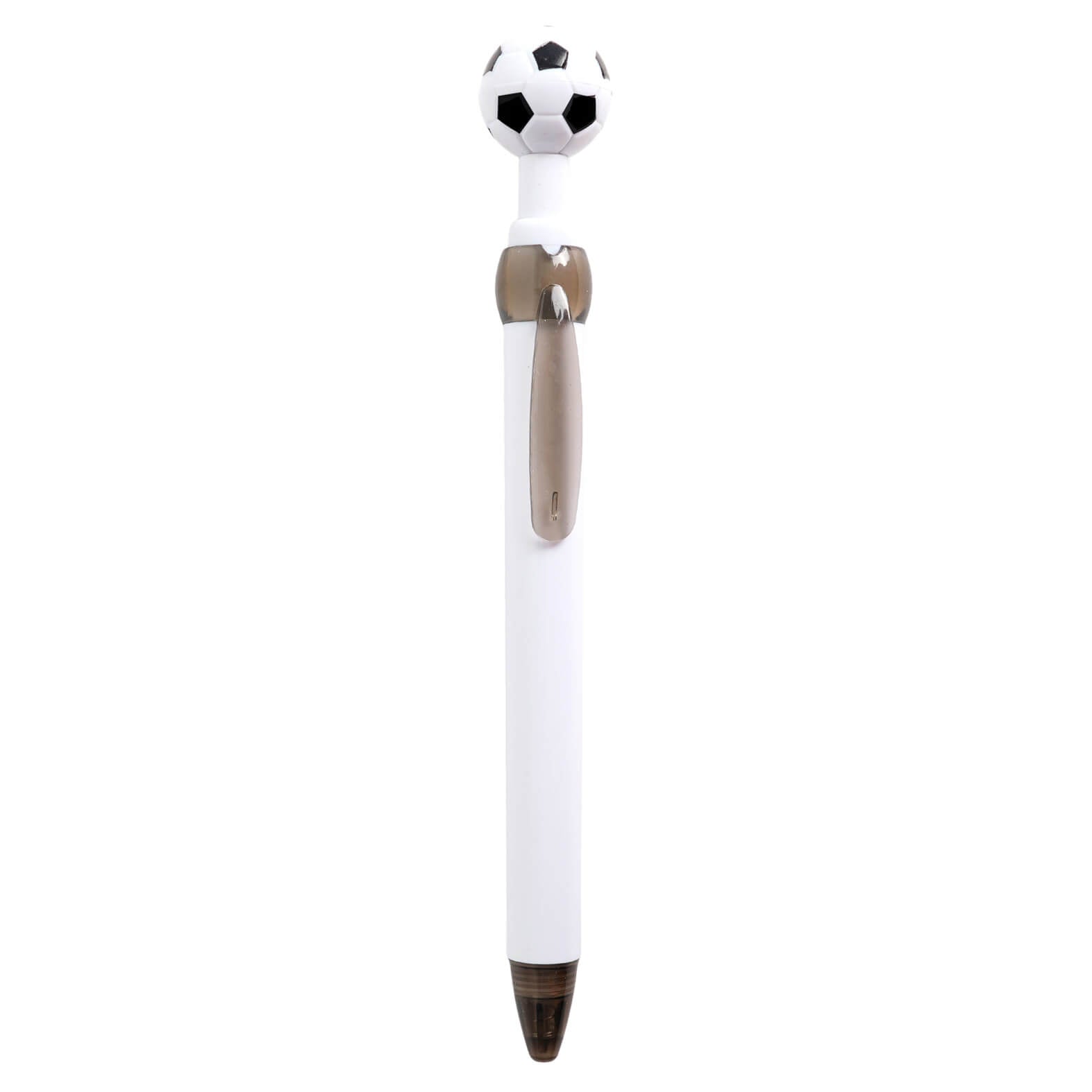 Descripción: Bolígrafo plástico con clip y figura de balón en la parte superior, que sirve como botón.