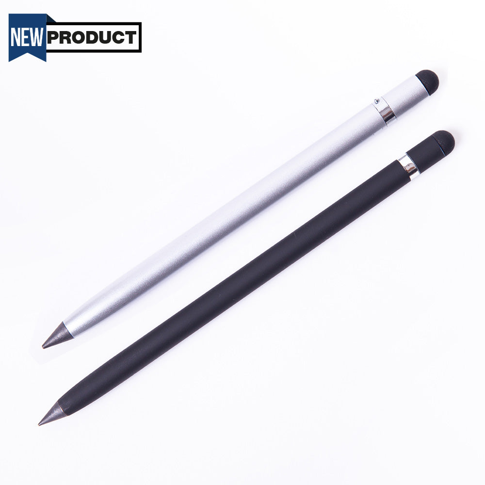 Descripción: Bolígrafo metálico ecológico con punta de escritura infinita que simula un lápiz. Cuenta con borrador y función touch.