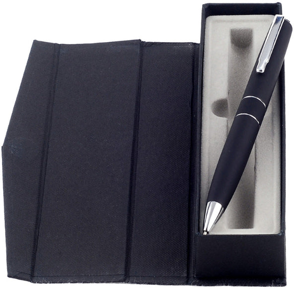 Descripción: Metal. Cuerpo Metálico engomado. Electro plateado en la parte superior. Clip y detalles Metálicos color plata. Tinta negra. Estuche con cierre magnético.