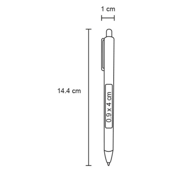 Descripción: Bolígrafo de plástico de apariencia metálica con mecanismo de click.