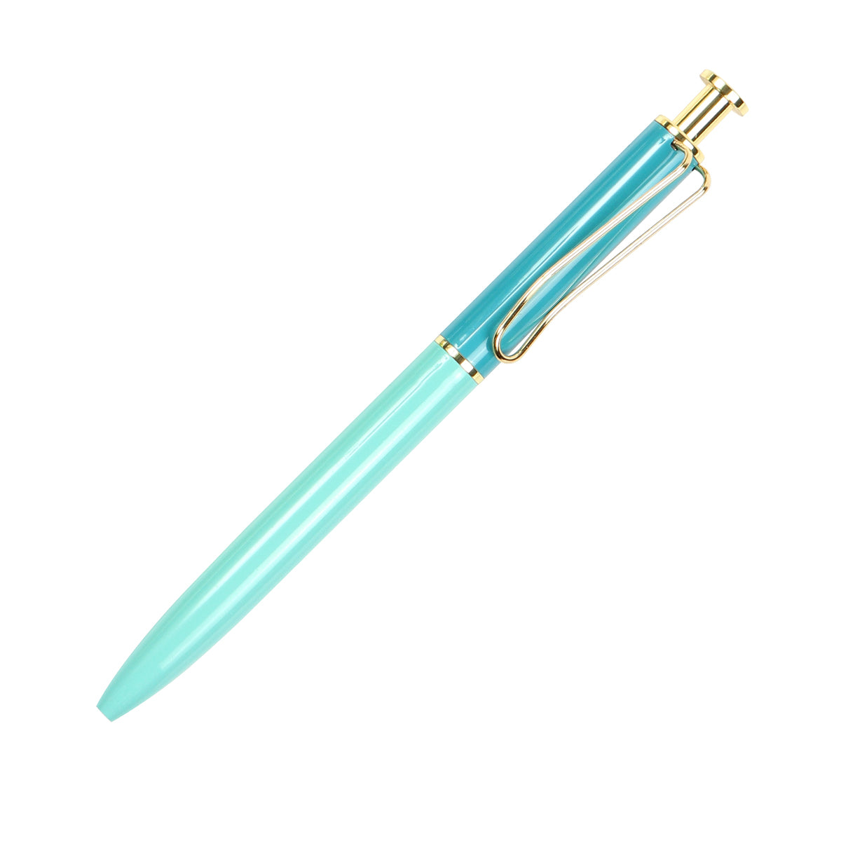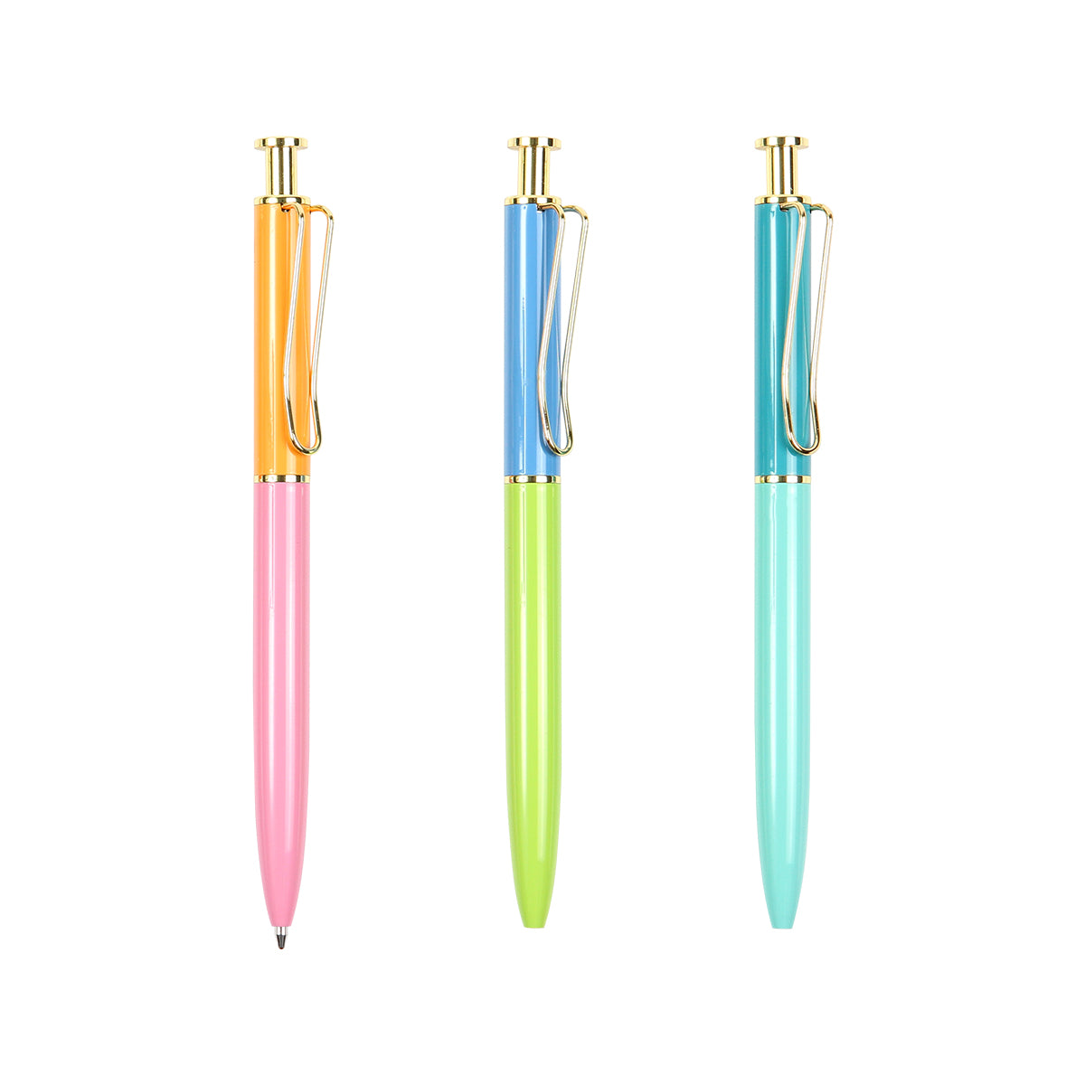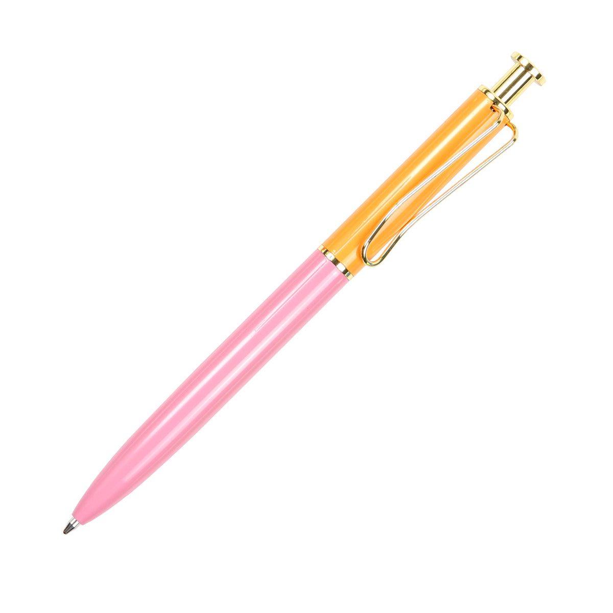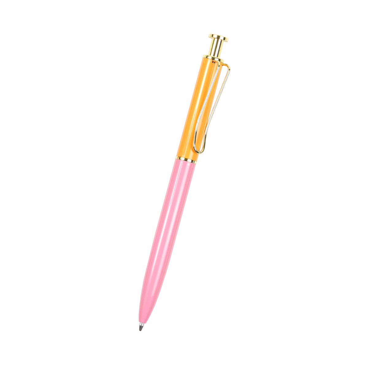 Descripción: Bolígrafo con acción de empuje, barril fabricado de acero inoxidable con acabado brillante, botón de empuje y clip color dorado. Tinta de escritura negra.