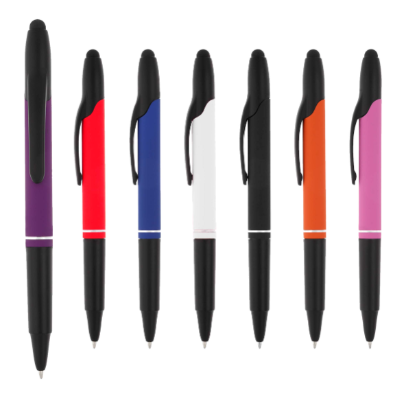 Descripción: Bolígrafo con acabado rubber, clip de plástico, goma touch screen, mecanismo de click y marca textos.