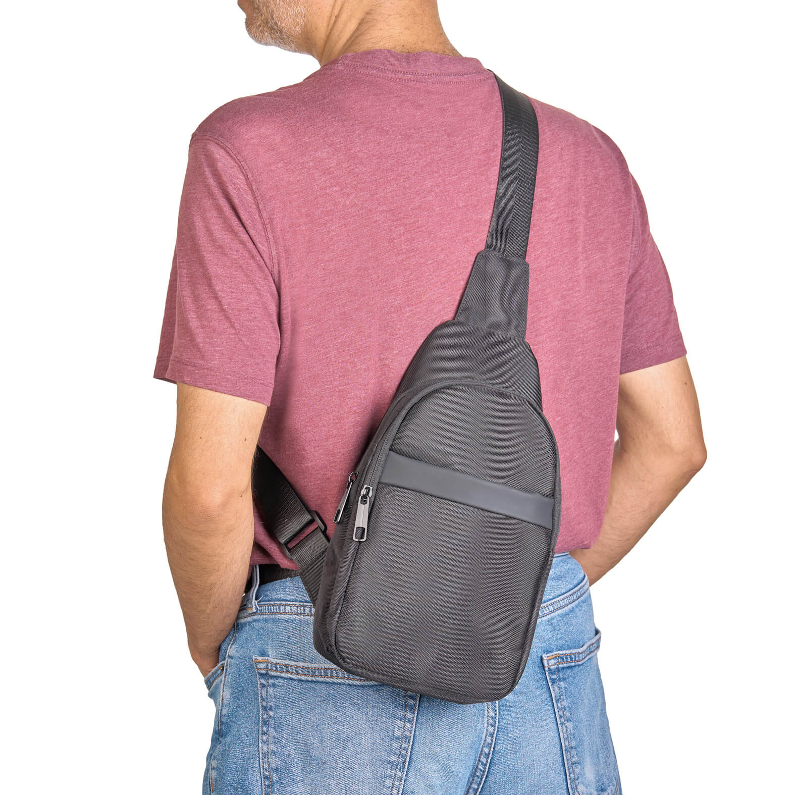 Descripción: Bolsa de hombro de poliéster con compartimento principal con bolsillo interno, bolsa frontal con cierre y compartimento abierto, así como correa ajustable.