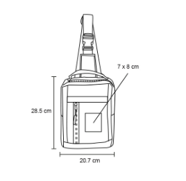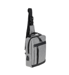 Descripción: Bolsa de hombro con 2 compartimentos, 1 compartimento principal con bolsa interna y entrada lateral de batería portátil, 1 compartimento frontal, doble correa ajustable, broche de seguridad y asa superior.