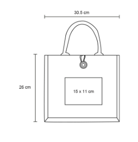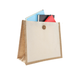 Descripción: Bolsa de loneta laminada con yute de 1 compartimento con botón para cierre y asas.
