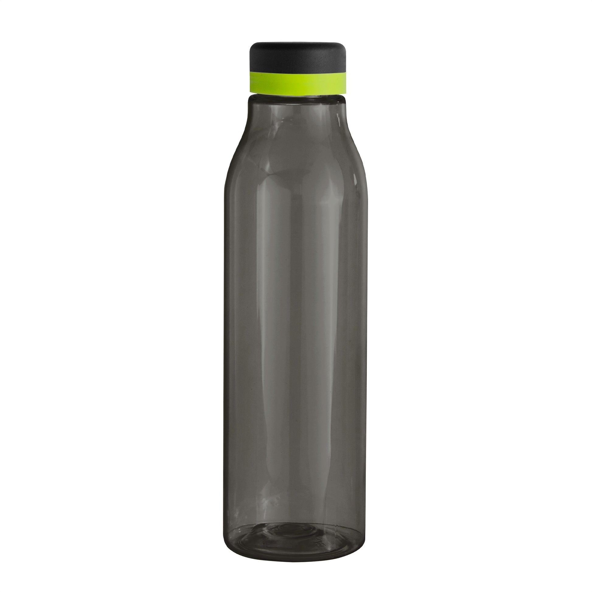 Descripción: Botella de plástico color negro con tapa a rosca color negro mate con anillo de silicona de diferentes colores. Atención: No utilizar con bebidas gaseosas ni líquidos calientes. / El manejo de este producto es delicado. / No exponer al sol y temperaturas altas por tiempo prolongado