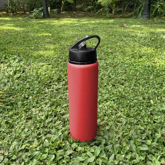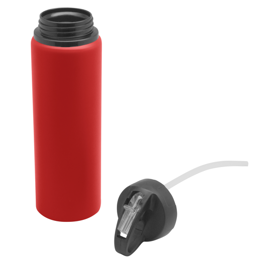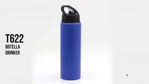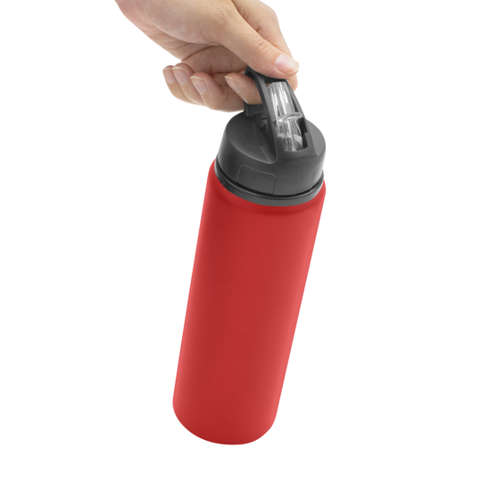 Descripción: Botella de aluminio con manija de agarre en la tapa y popote plástico. Tapa a rosca de plástico. Presentación en caja de regalo.