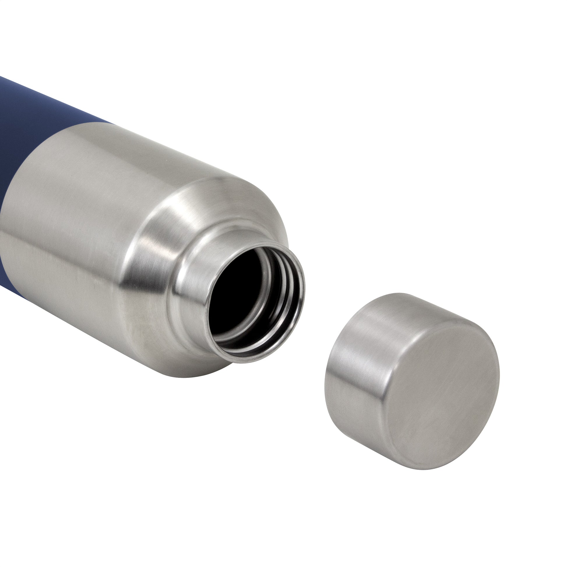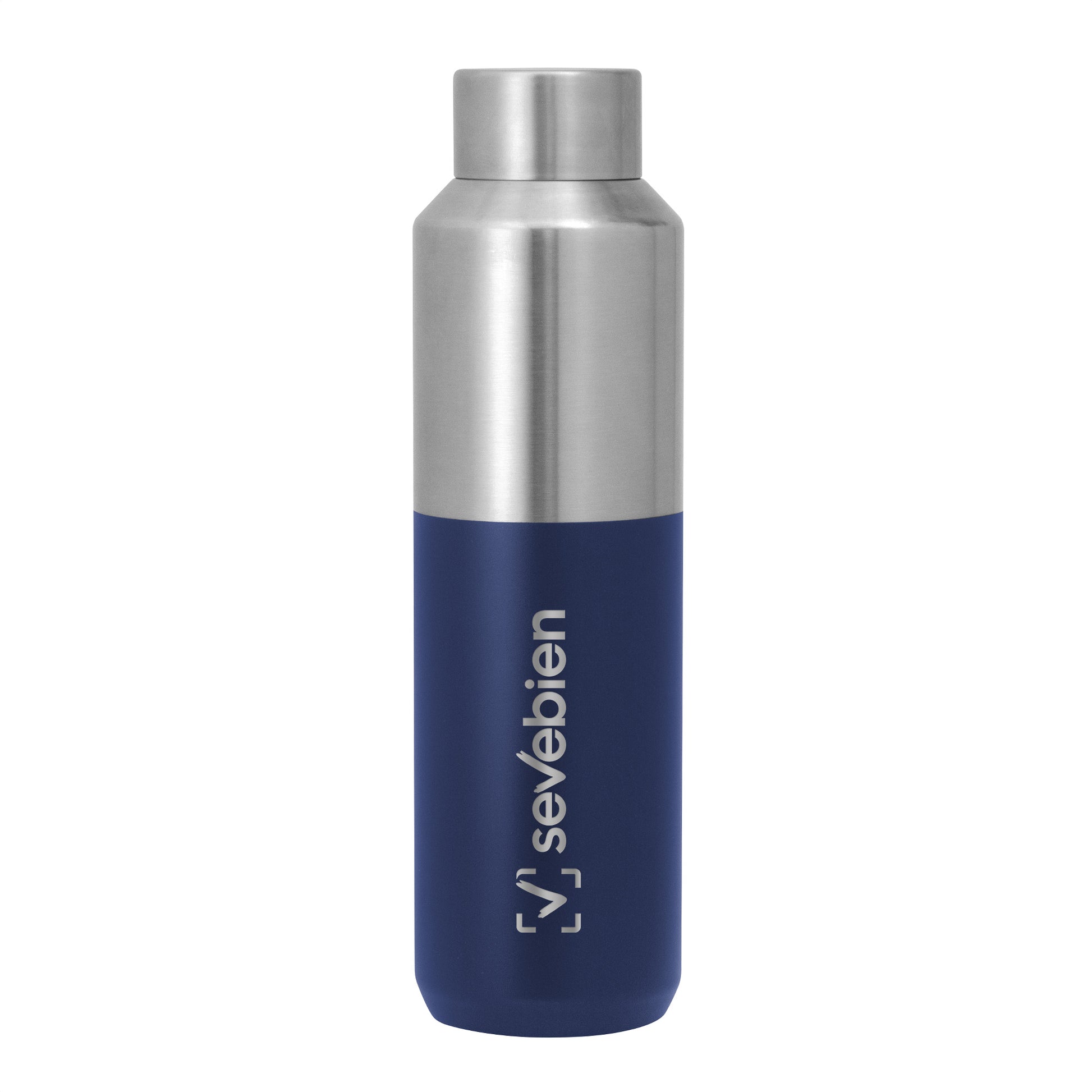 Descripción: Aislamiento Superior para Bebidas Calientes y Frías. Botella doble pared, sellada al vacío. Interior de acero 304 y exterior de acero 201. Tapa a rosca de acero 201 con anillo de silicona. Pintura acabado mate en parte inferior. Mantiene por más de 12 hs la temperatura de las bebidas calientes y 24 hs de las bebidas frías. Presentación en caja de regalo kraft.
