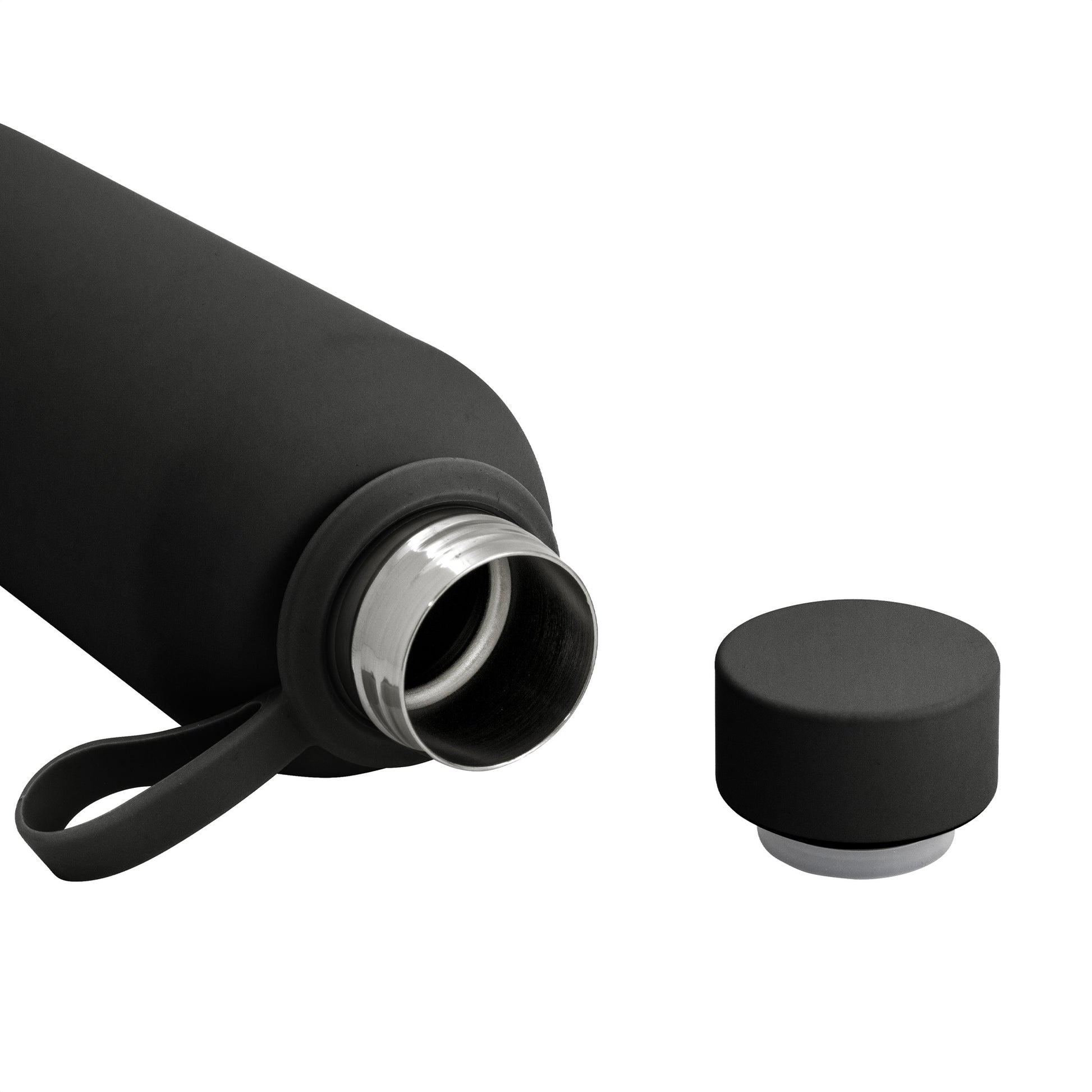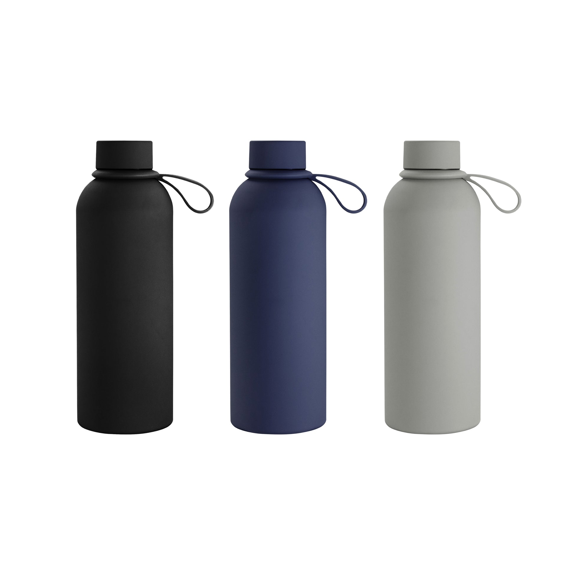 Descripción: Botella doble pared, sellada al vacío. Interior de acero 304 y exterior de acero 201. Tapa a rosca de acero 201, interior plástico con anillo de silicona. Asa de silicona para un transporte fácil. Pintura con terminación suave al tacto. Mantiene hasta 6 hs la temperatura de las bebidas calientes y 12 hs de las bebidas frías. Presentacion : en caja de regalo kraft.
