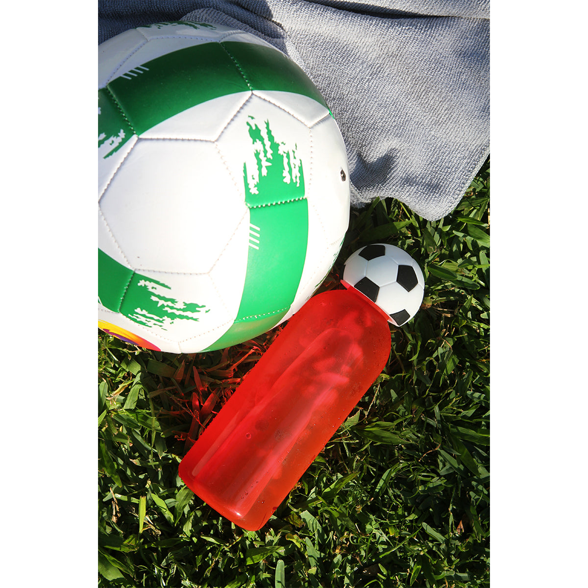 Descripción: Esta botella de una pared está fabricada en AS, con una estructura ligera y resistente. Su cuerpo presenta un diseño cilíndrico de superficies lisas. Cuenta con una capacidad de 600 ml, ofreciendo un formato estable y práctico para contener líquidos. Incluye una tapa que incorpora un accesorio fabricado en silicón con forma de balón de fútbol, integrado de manera firme al conjunto. El diseño combina materiales durables con un acabado funcional y decorativo.