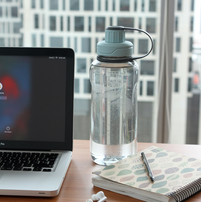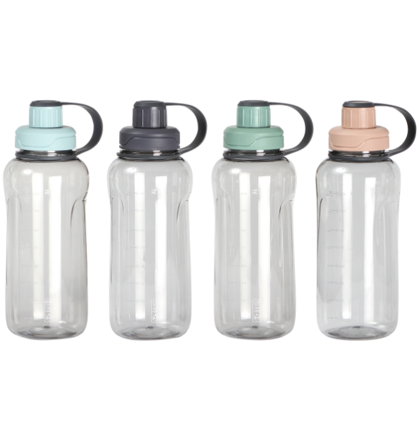 Descripción: Botella deportiva fabricada en policarbonato con tapa de rosca fabricada en PP y asa de PE. Fabricada en materiales de grado alimenticio, ideal para bebidas frías o calientes; no usar en microondas. Capacidad de 1,500 ml (50.5 oz). Puede soportar temperaturas de -20°C a 99°C. Tapa a prueba de escurrimientos o fugas.
