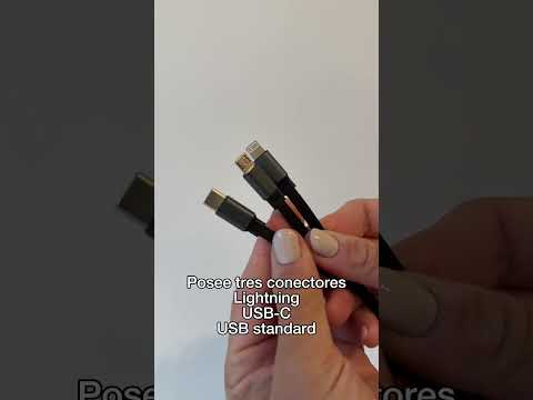 Descripción: Cable de carga retráctil con longitud de hasta 115 cm. 3 en 1. Posee tres conectores (Lightning, USB-C y USB estándar).