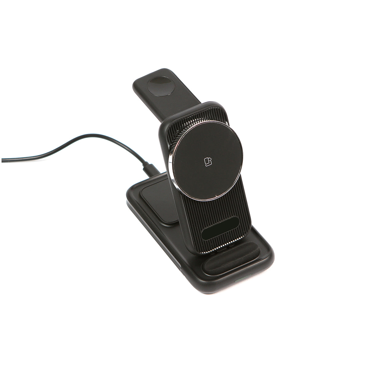 Descripción: Cargador inalámbrico 4 en 1. apto para cargar teléfono, reloj y audífonos inalámbricos. Capacidades de carga 5W/7,5W/10W/15W (MAX). Cuenta con salida USB tipo-C. Diseño plegable. Cuenta con protección contra sobrecarga y colocación de objetos extraños.