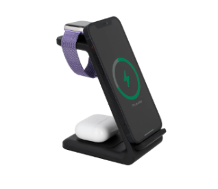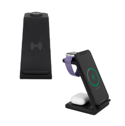 Descripción: Wireless charger 3 en 1 para smartphone, audífonos y reloj inteligente. Incluye cable de carga tipo C. (Compatible para dispositivos con tecnología Qi).