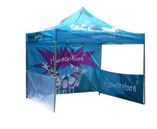 Descripción: Carpas diversos diseños y modelos en material de aluminio y con diversas medidas . Toldo con logo aplicado , Toldo con impresión a full color , paredes completas o medias paredes .