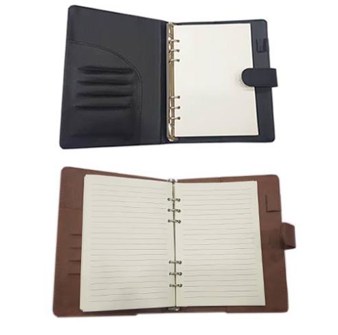 Descripción : Carpeta de curpiel con block de 90 hojas de raya de 14.5 x 21 cm y arillo metálico.