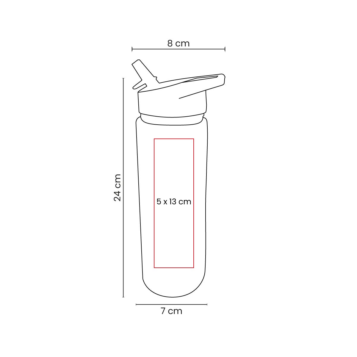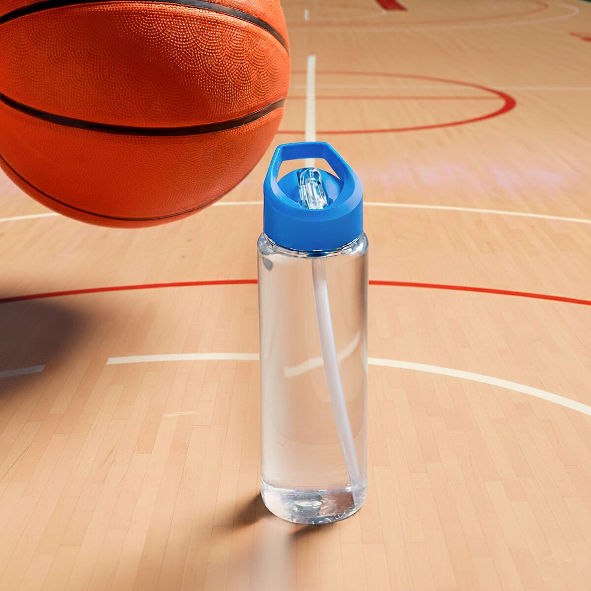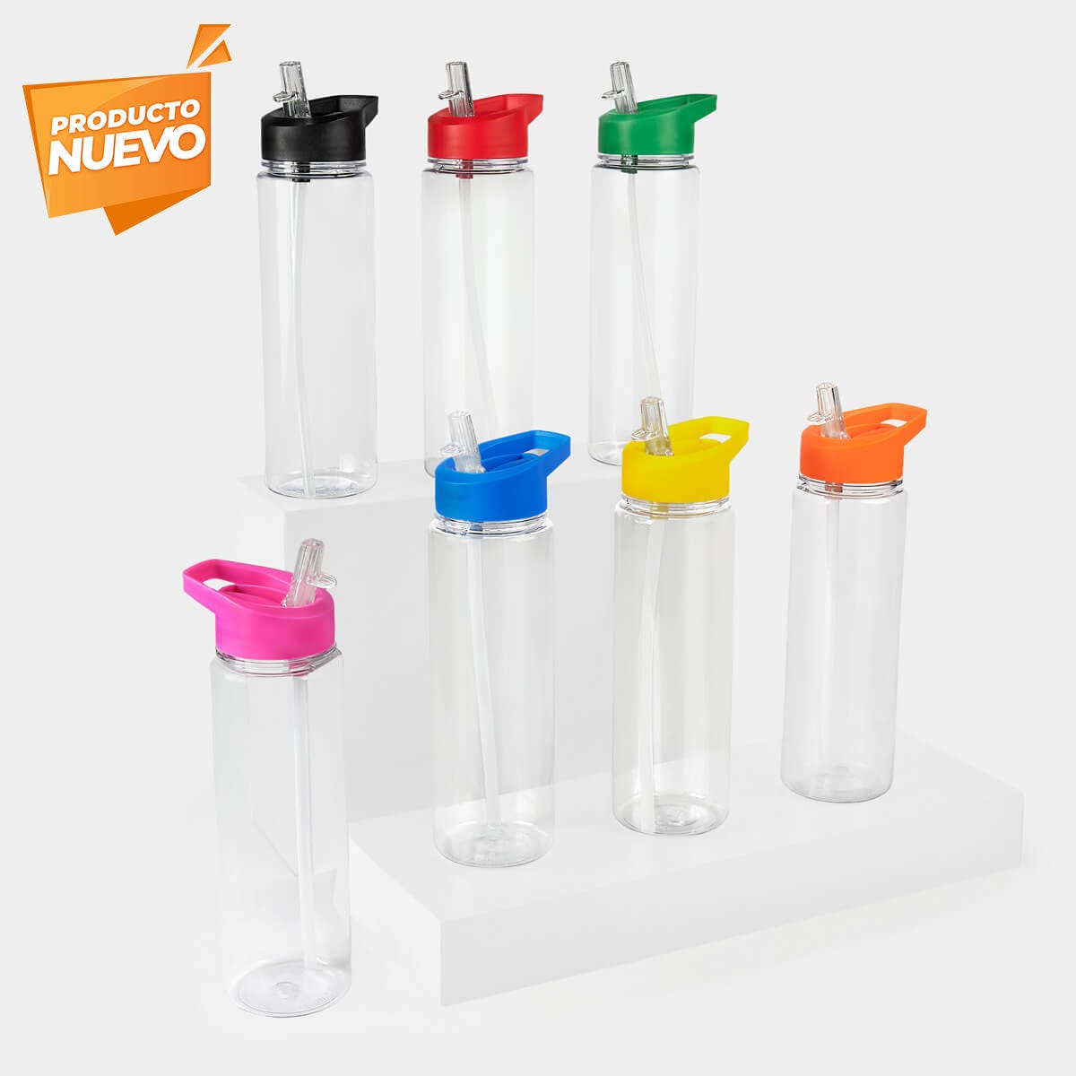 Descripción: Pared sencilla de plástico. Sistema de rosca que permite abrir y cerrar la tapa. Incluye asa con un agarre cómodo y suave al tacto, una boquilla abatible para hidratarse y un popote desmontable para facilitar la limpieza.