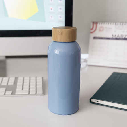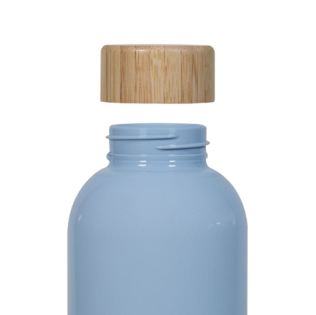 Descripción: Cilindro de plástico con tapa de bambú. Sistema de rosca twist-off que permite abrir y cerrar la tapa en un giro. No exponer el cilindro a temperaturas mayores a 40 °C durante su almacenamiento y transformación. Mantener en su empaque individual antes y después de su transformación. No apto para bebidas calientes. No introducir en microondas.