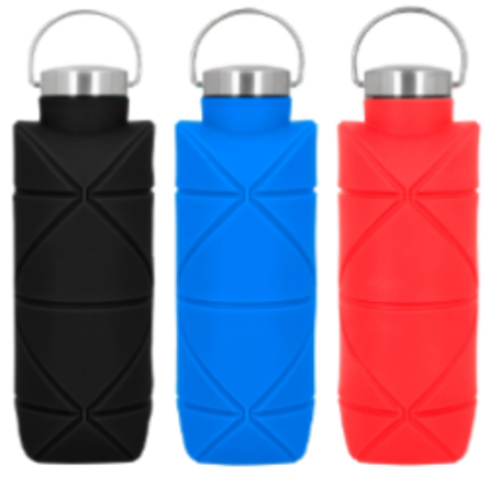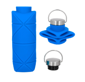 Descripción: Cilindro de silicón que se extiende y contrae, con tapa metálica enroscable y asa.