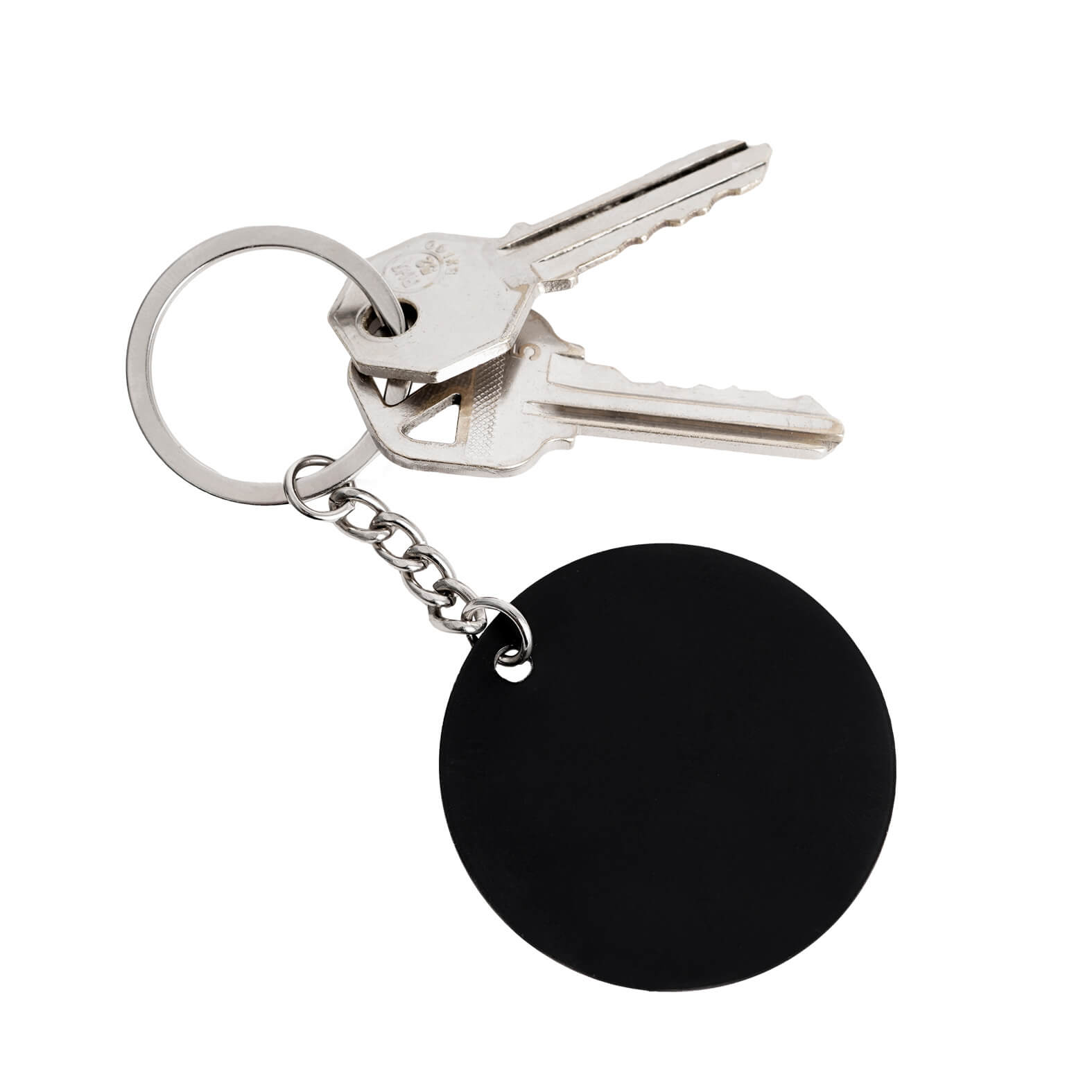 Descripción: Llavero circular con acabado de goma, diseño de balón de fútbol y aro reforzado.