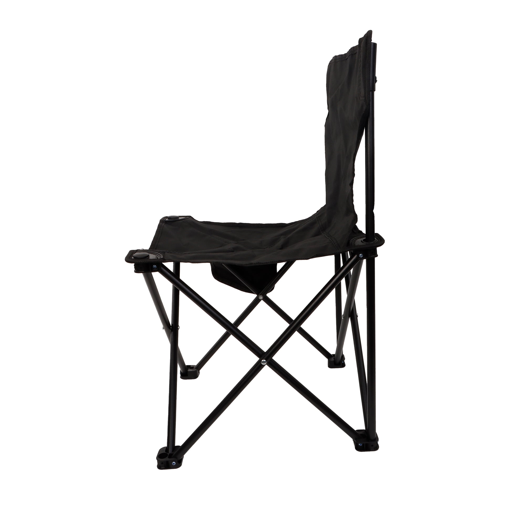Descripción: Mini silla portátil plegable de metal con asiento y respaldo de poliéster. Incluye funda con asa y correa ajustable.