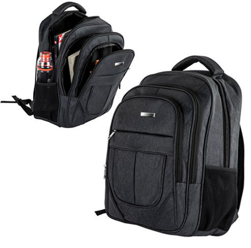 Descripción : Mochila de 4 compartimentos. Con espacio acolchado para laptop max. de 17 pulgadas, organizador interno, respaldo y tirantes acojinados con cinturón de seguridad, bolsillos laterales de red y placa metálica.