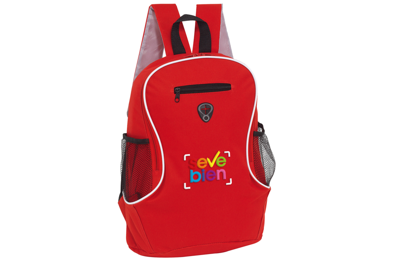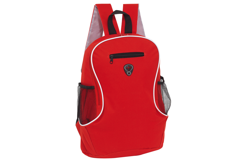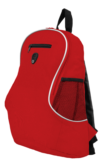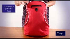 Descripción: Capacidad 16 litros. Aprox. Poliéster 600D. Compartimento principal con bolsillo frontal con cierre. Dos bolsillos laterales de red porta bebidas. Correas ajustables. Cierres metálicos. Salida para audífonos.