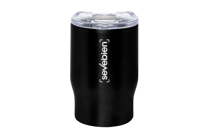 Descripción: Mug doble pared. Interior de acero 304 y exterior de acero 201. Tapa plástica transparente a rosca con cierre anti derrame. Mantienen las bebidas frías y calientes por más tiempo. No utilizar con bebidas gaseosas. Presentación en caja de regalo.