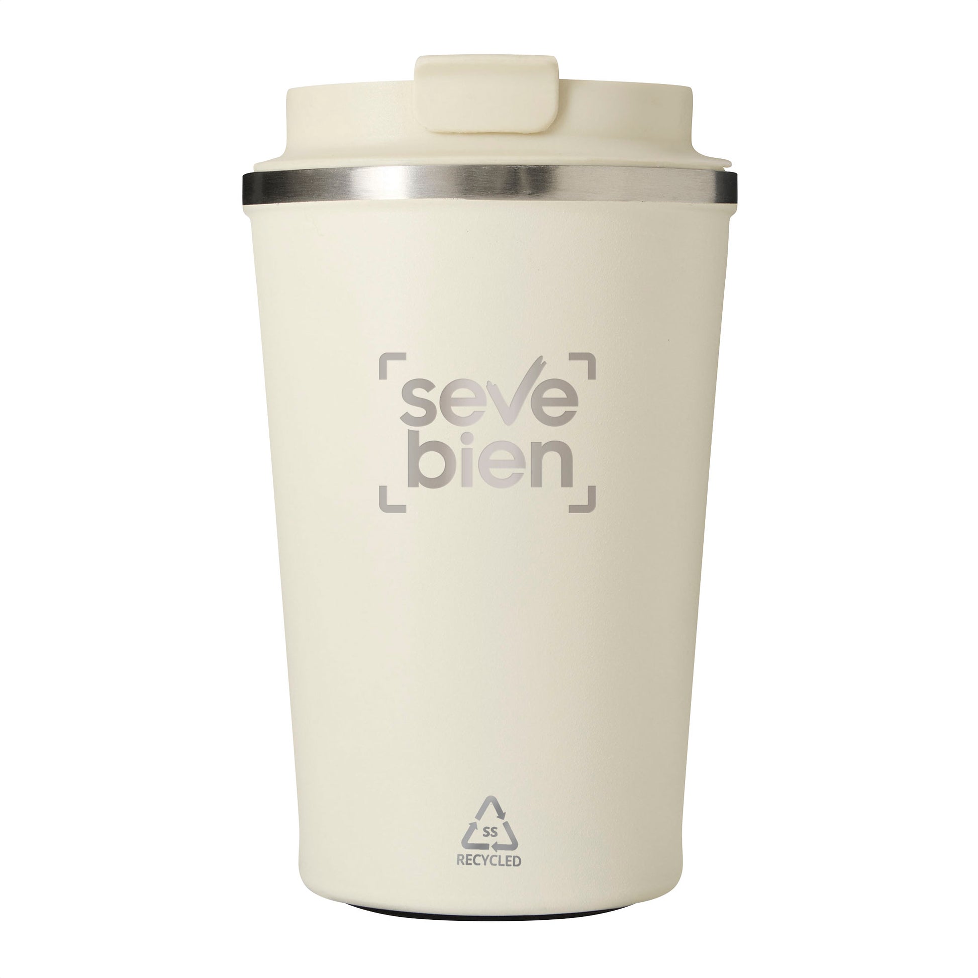 Descripción: Mug doble pared, sellado al vacío. Aislamiento térmico. Tecnología vacuum. Interior en acero 304 reciclado y exterior en acero 201 reciclado. Tapa de polipropileno a rosca, del mismo color que el vaso, con anillo de silicona y seguro antiderrame. Pintura con acabado mate, textura porosa. Base de silicona antideslizante. Mantiene hasta 8 hs la temperatura de las bebidas calientes y hasta 12 hs la de las bebidas frías. Presentación en caja de regalo kraft