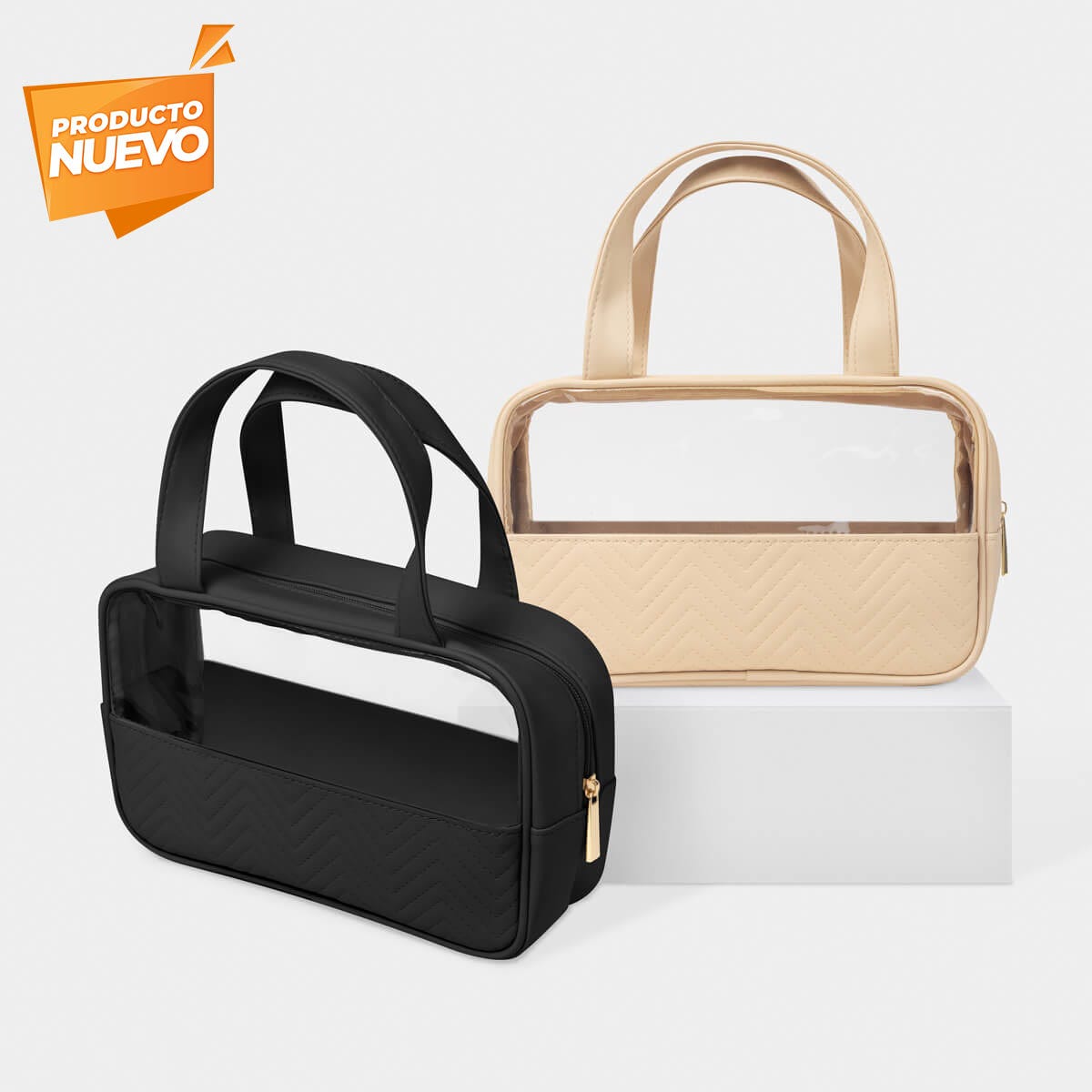 Descripción: Neceser de curpiel con vista frontal en mica de PVC. Permite ver al interior y sus asas superiores ofrecen mayor comodidad en su traslado. Ideal para organizar productos de belleza, cuidado personal o viaje.