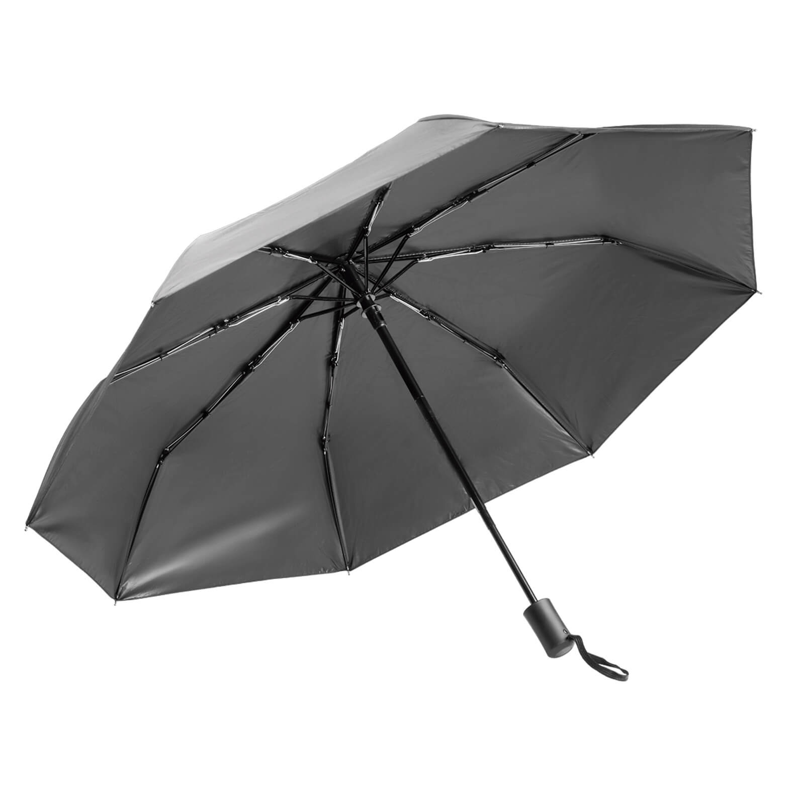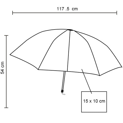 Descripción: Paraguas de bolsillo con sistema de apertura y cierre automático, 8 gajos, broche de velcro, mango de plástico con asa e incluye funda.