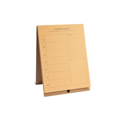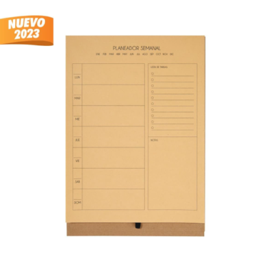 Descripción: Planeador semanal tamaño profesional de pasta dura de cartón con 80 hojas ecológicas y elástico para bolígrafo. Organiza fácilmente tus actividades y logra tus objetivos. Bolígrafo no incluido.