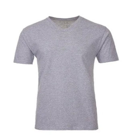 Descripción: Playera cuello V caballero Cuello V en rib Corte regular Tapa costura de hombro a hombro Doble pespunte en cuello, bajos y manga.