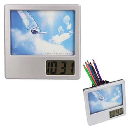 Descripción : Porta retrato con reloj digital y lapicera. Utiliza 2 baterías AAA ( no incluidas).