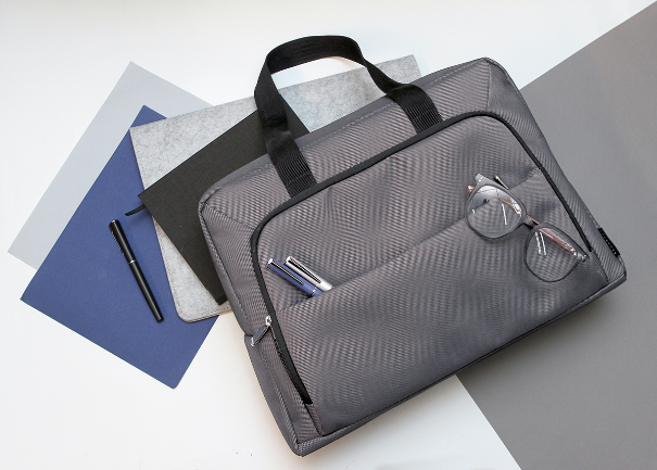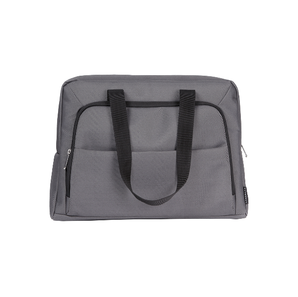 Descripción: Portafolio para laptop fabricada en poliéster, con relleno de espuma de PE. Incluye compartimento principal, secundario, además de bolsillo para documentos y dos asas.