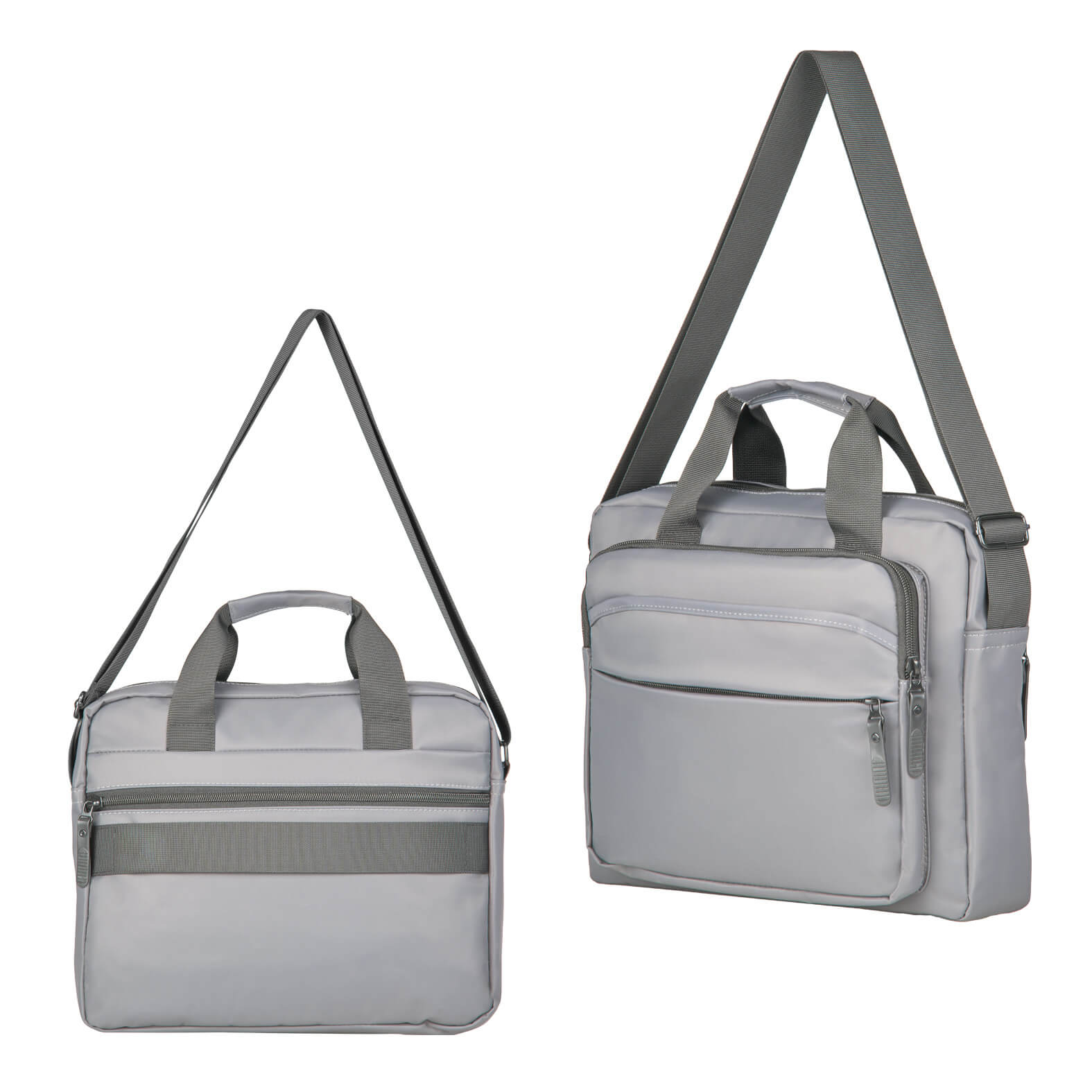 Descripción: Portafolio con compartimento principal para laptop de hasta 15", bolsa interna con cierre, dos bolsillos frontales con cierre, uno de fácil acceso, bolsa trasera con cierre, banda carry-on, asas y correa ajustable.
