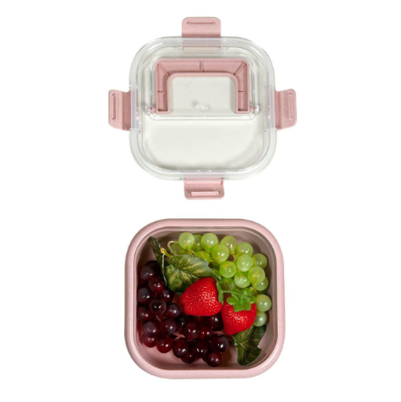 Descripción: Lonchera de plástico y fibra de trigo que combina versatilidad y sostenibilidad. Su tapa cierra de manera segura con cuatro pestañas para prevenir derrames. El asa plegable facilita su transporte y también ahorra espacio cuando no está en uso. Por su forma cuadrada, esta lonchera es perfecta para almacenar sándwiches o pequeños refrigerios, proporcionando una opción práctica y ecológica para llevar tus comidas a donde quieras.