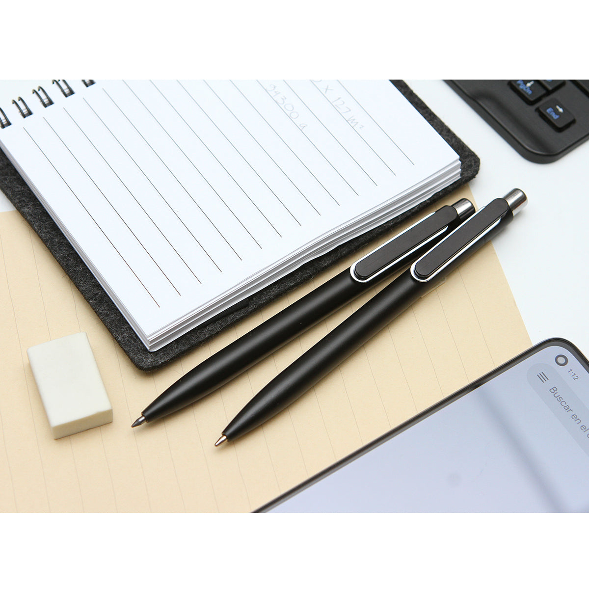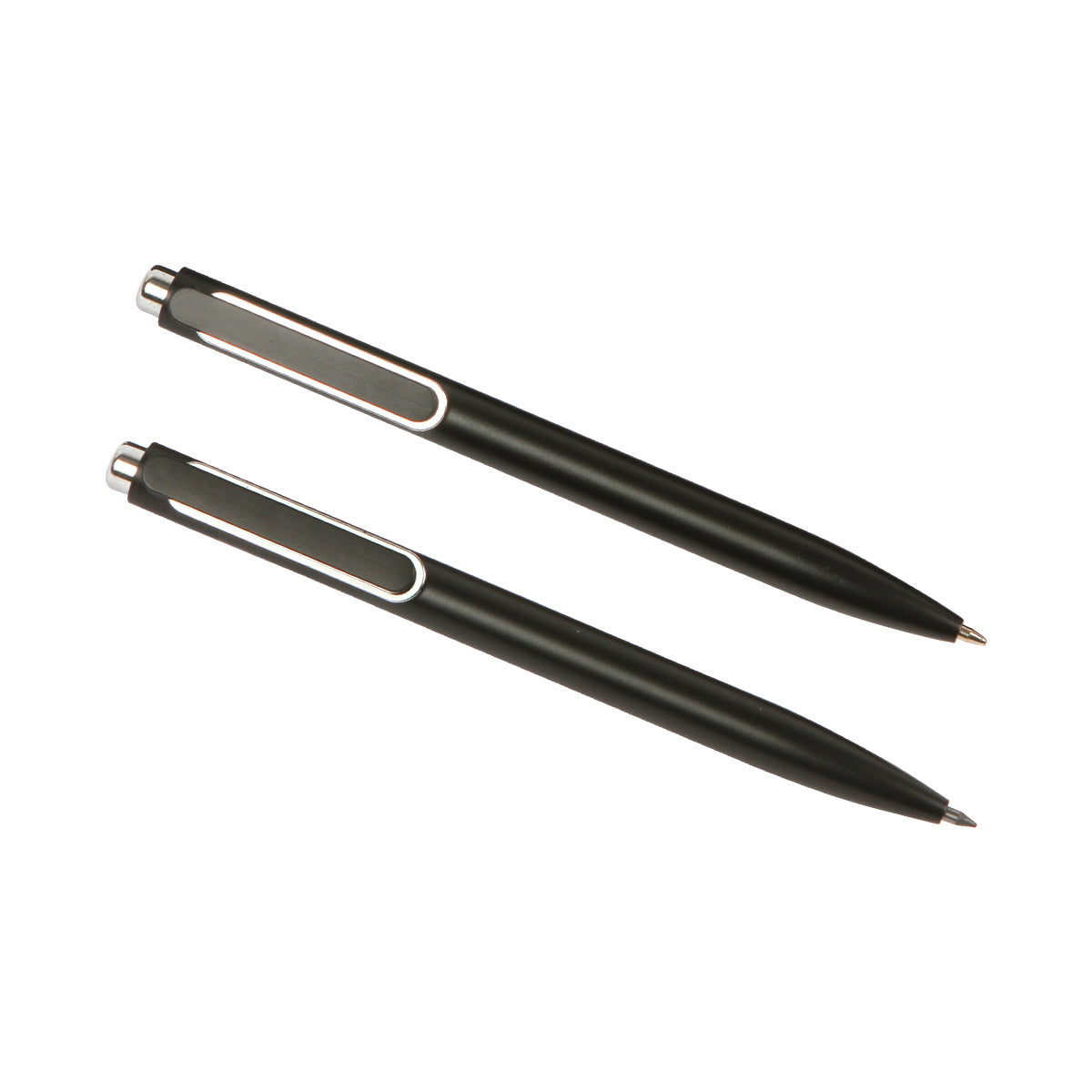 Descripción: Juego de bolígrafo con tinta negra y lápiz tipo bolígrafo con punta infinita, ambos fabricados en aluminio. Elegante set de escritura que incluye una caja de presentación en papel negro. Estilo e innovación en un solo paquete.
