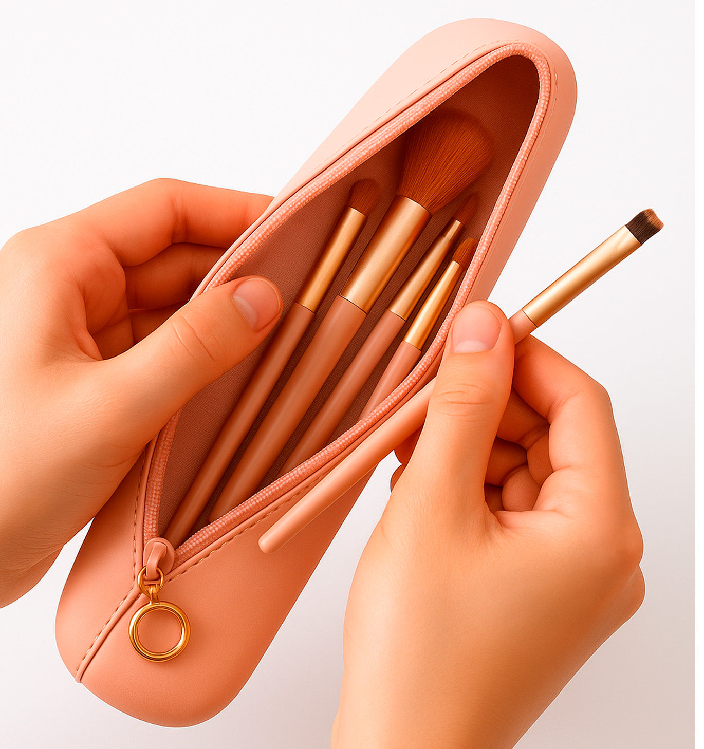 Descripción: Set de brochas para maquillaje con 8 brochas hipoalergénicas para viaje. Incluye estuche de silicona.