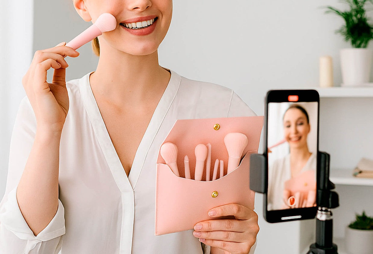 Descripción: Set de 10 brochas para maquillaje con funda de curpiel.