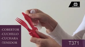 Descripción: Tenedor, cuchillo y cuchara con cobertor higiénico.