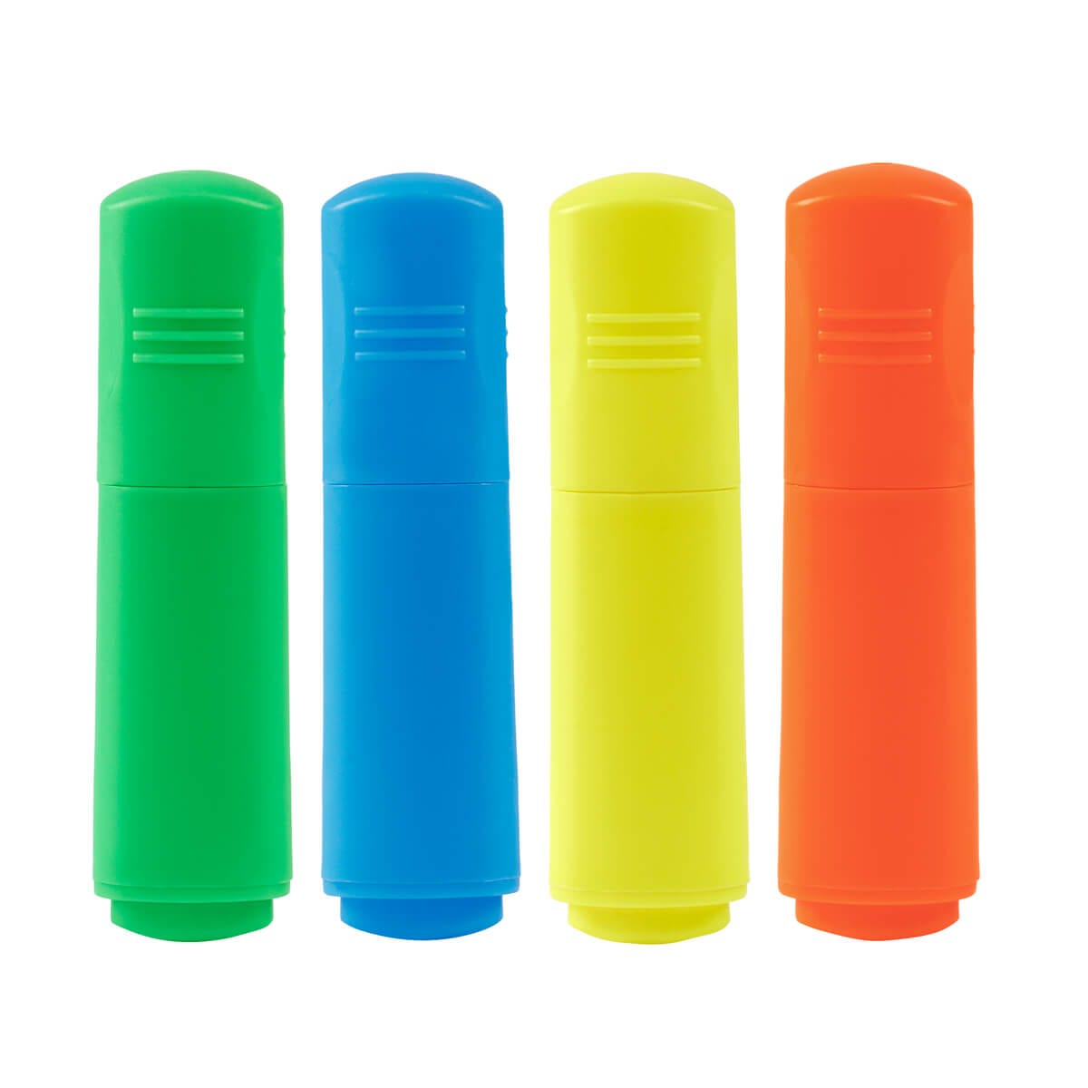 Descripción: Incluye 4 marcatextos en colores azul, amarillo, verde y naranja, en un práctico estuche ecológico con ventana. Diseño compacto, ideal para oficina o escuela. Color de la tinta : Azul / Amarillo / Verde / Naranja