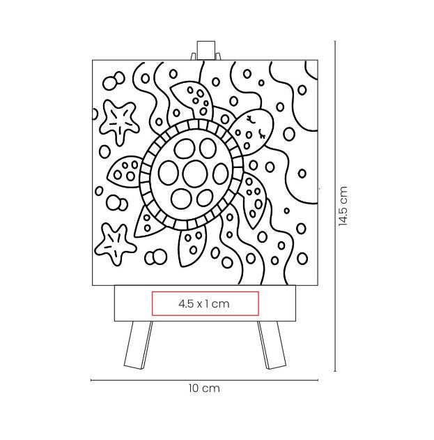 Medidas: 10 x 10 cm Lienzo / 8 x 14.5 x 2 cm Caballete