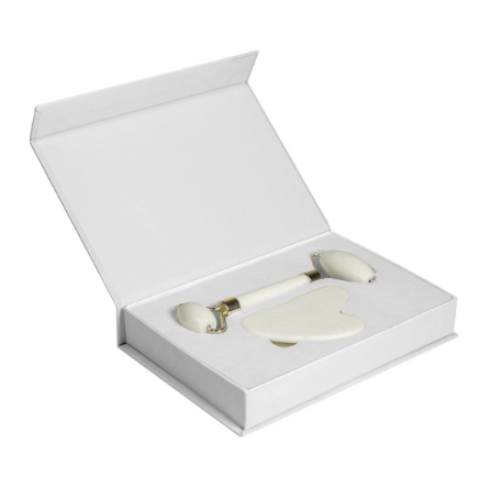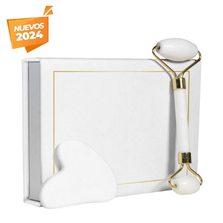 Descripción: Set masajeador facial de piedra natural. Incluye 1 rodillo para masajear y estimular la piel, ayudando a mejorar la circulación sanguínea y reducir la hinchazón facial; 1 piedra facial, se utiliza para aplicar presión y realizar movimientos de deslizamiento sobre la piel. Ayuda a aliviar la tensión muscular y a mejorar la absorción de productos para el cuidado de la piel. Caja individual con cierre imantado.