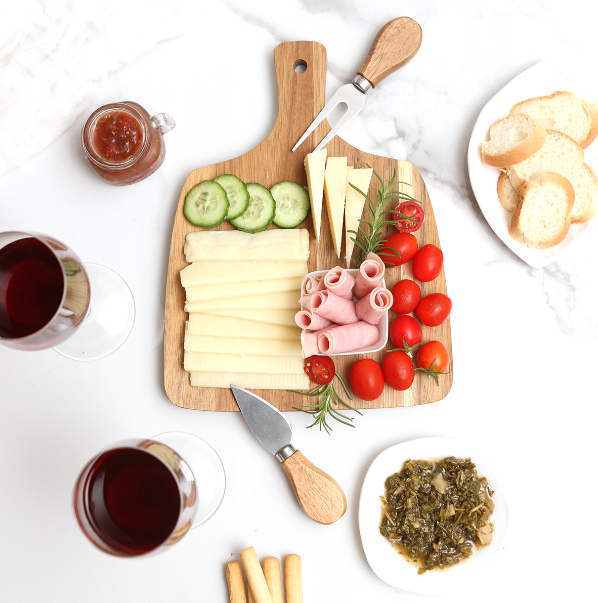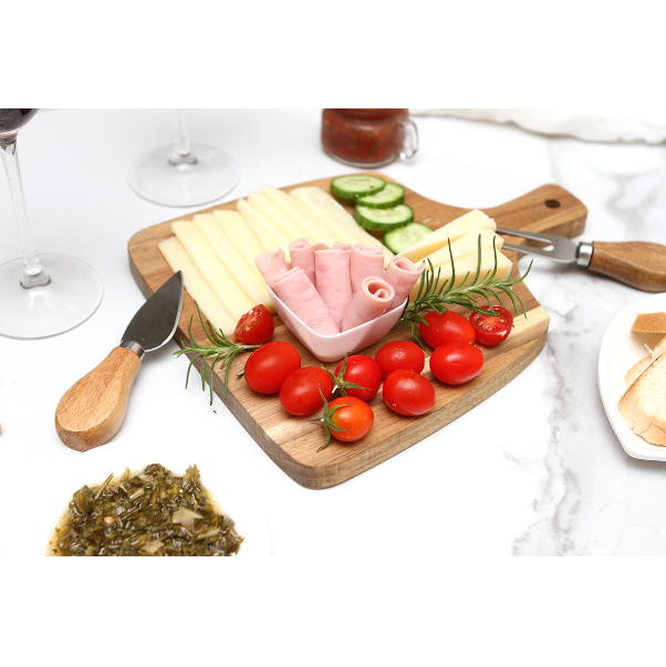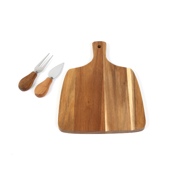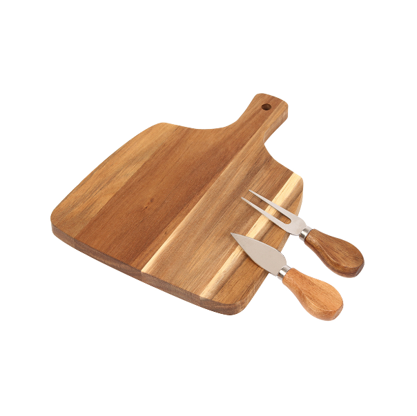 Descripción : Set de quesos fabricado en madera de acacia. Incluye base para cortar, pala y trinche, fabricados con madera de acacia y acero inoxidable.