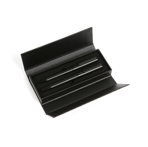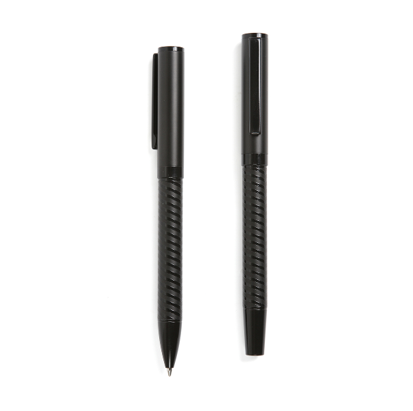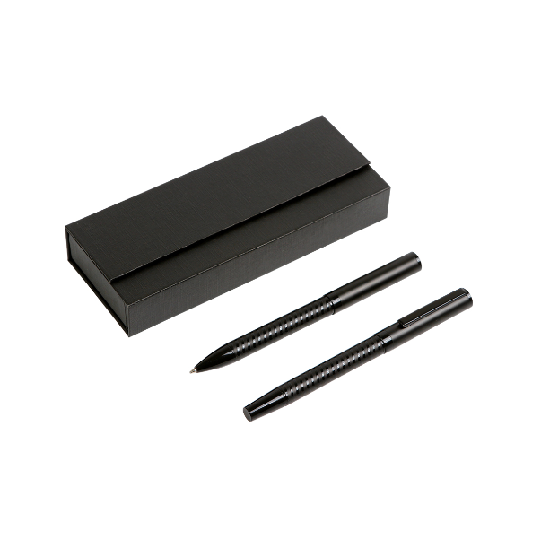Descripción : Set ejecutivo de dos bolígrafos metálicos negros, incluye caja de regalo. Un bolígrafo con mecanismo retráctil y otro con mecanismo twist.